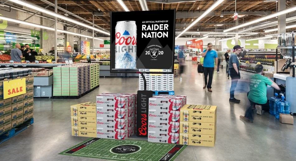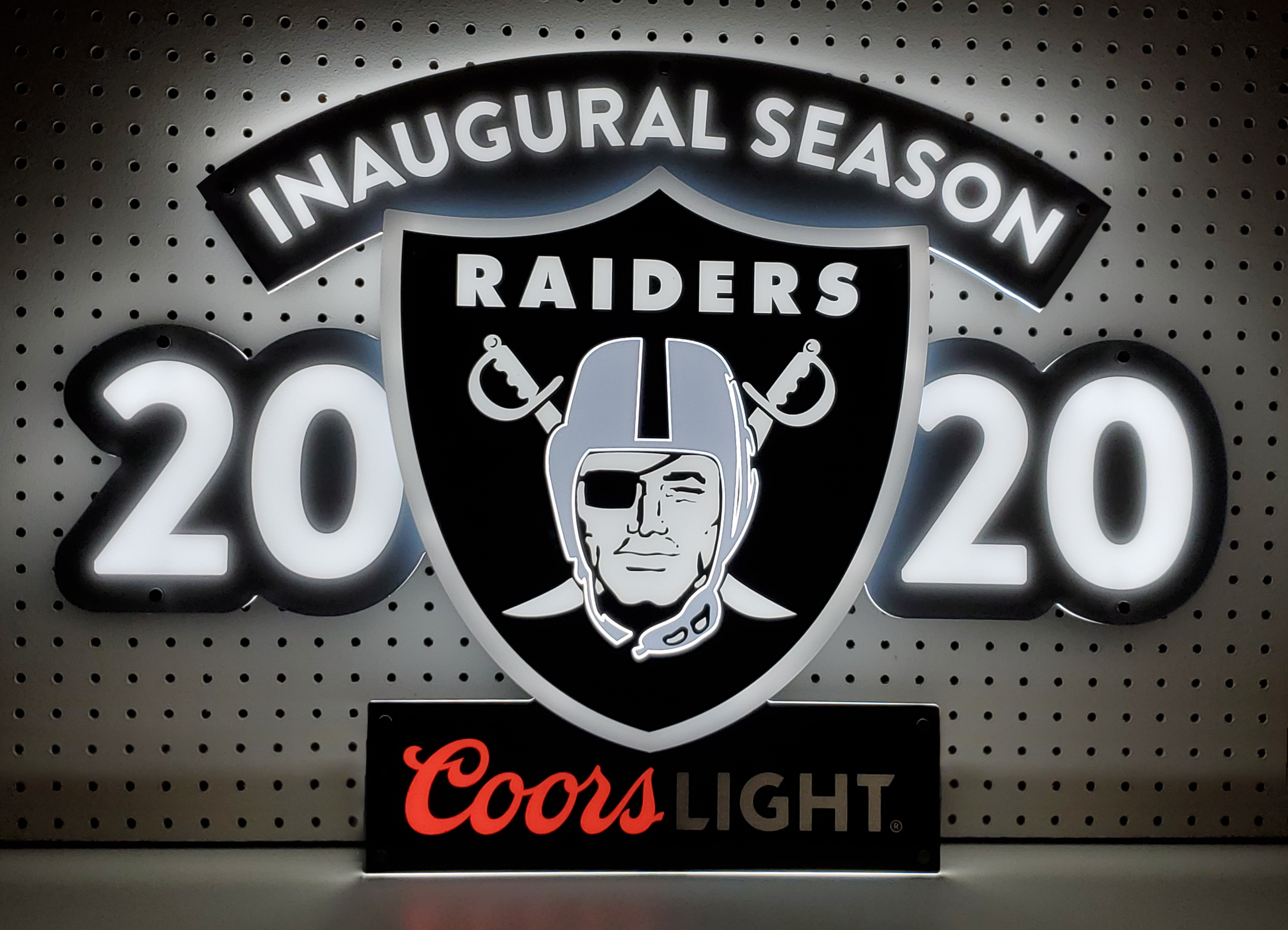 High-end semi-perm display piece created to celebrate the partnership for the Inaugural season. This was inspired by the Al Davis Memorial torch, located inside the Raiders’ new Allegiant Stadium on the Coors Light Landing. This torch was incredibly special to the Raiders organization and symbolic of the newly minted Las Vegas Raiders.