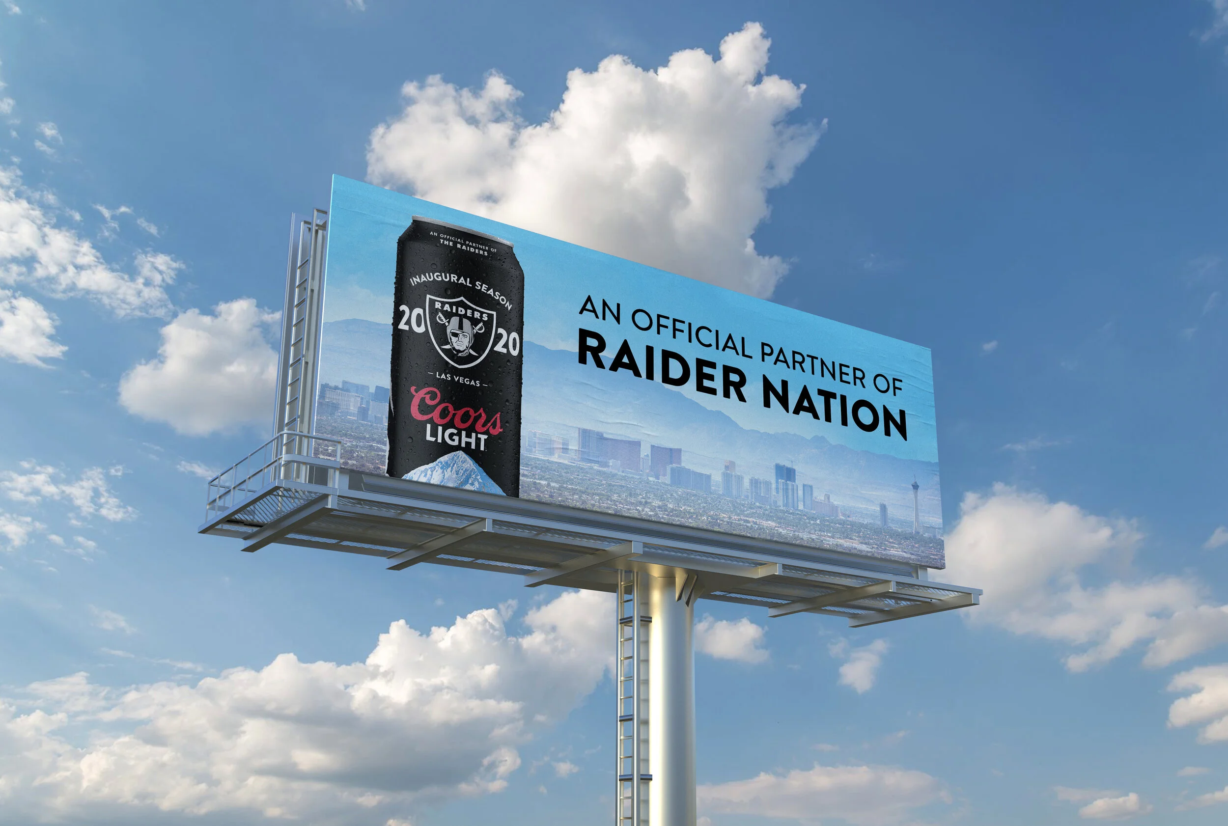 With the Raiders moving to a new city and a new stadium, Coors Light had the opportunity to create a unique and impactful partnership. We created an Inaugural Season lockup that ended up being used by not only Coors Light, but other brands partnering with the Raiders for their 2020 season as well. That lockup was applied to all different off- and on-premise pieces, merch, out of home boards, and standout primary packaging. This program became the new gold standard for sports partnerships and how to make seriously cool stuff that wasn’t just our logo next to thiers.